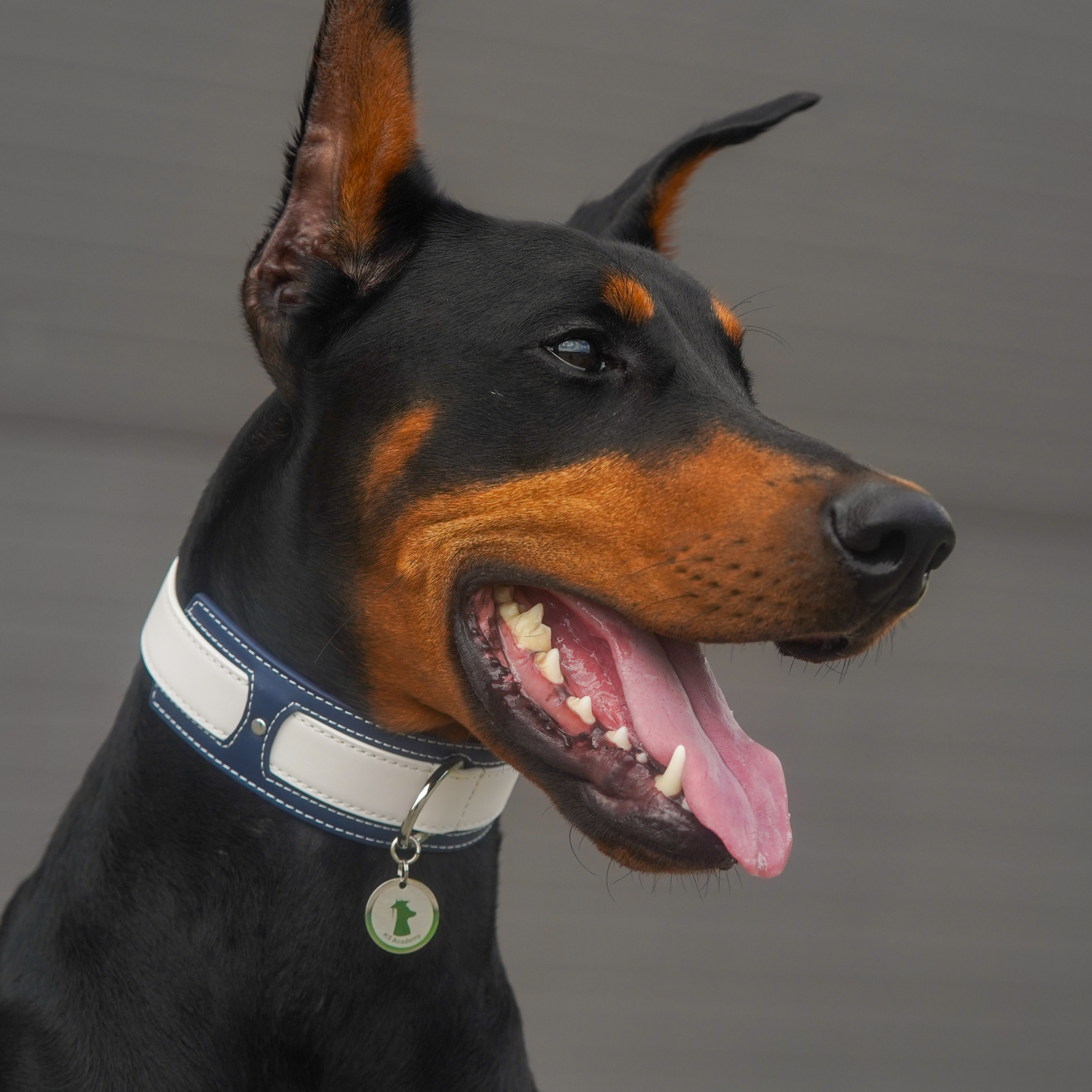 Each collar includes an exclusive K9 Academy Dog Tag, featuring our signature silhouette emblem — a classy final detail that completes the look.